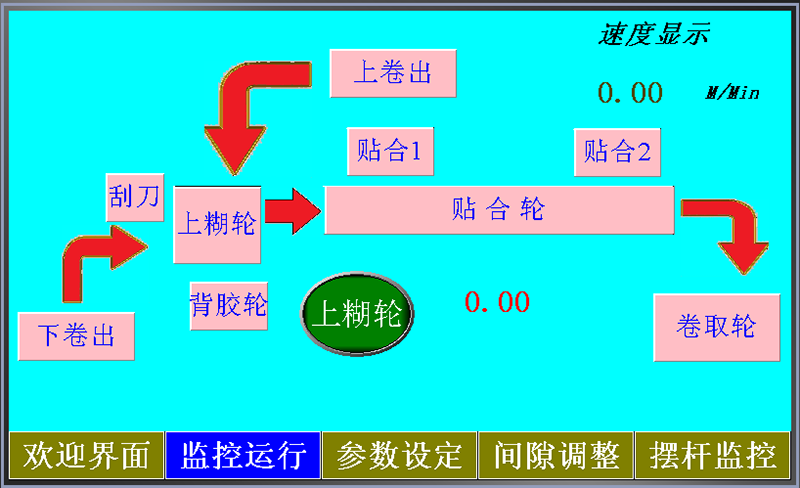 2)【上糊輪】此按鈕用于清洗上糊輪用,可以自己改變運行速度(不參與自動控制)