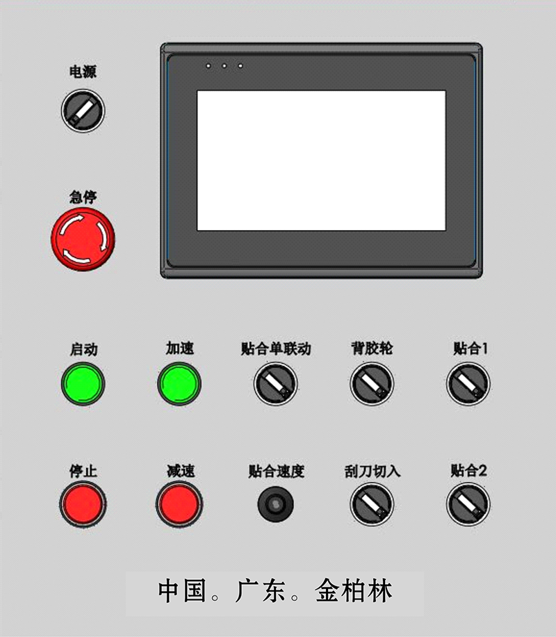 6)【背膠輪】【刮刀切入】【貼合1】【貼合2】均為氣缸選擇按鈕。