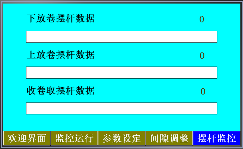 2)上放卷擺桿數據:顯示上放卷擺桿位置(0—2000)進度條比例顯示(0-100)